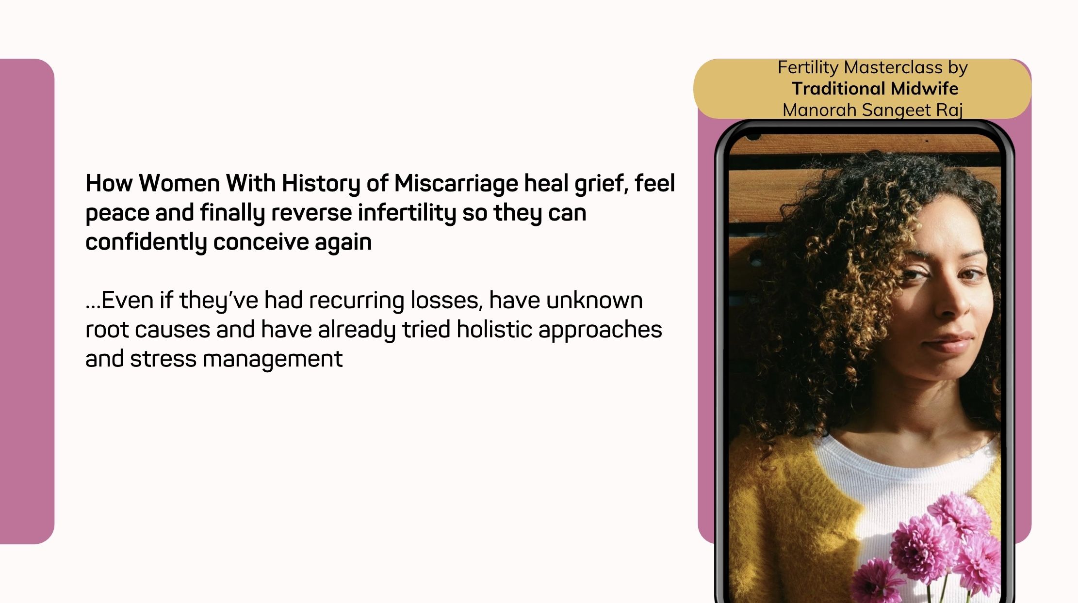 My name is Manorah Sangeet Raj and I am a traditional midwife who has attended 200 healthy births. I am most well known for helping women over 35 with unexplained infertility and chronic miscarriages get and STAY pregnant naturally without IVF. In this brief video, I’ll share: